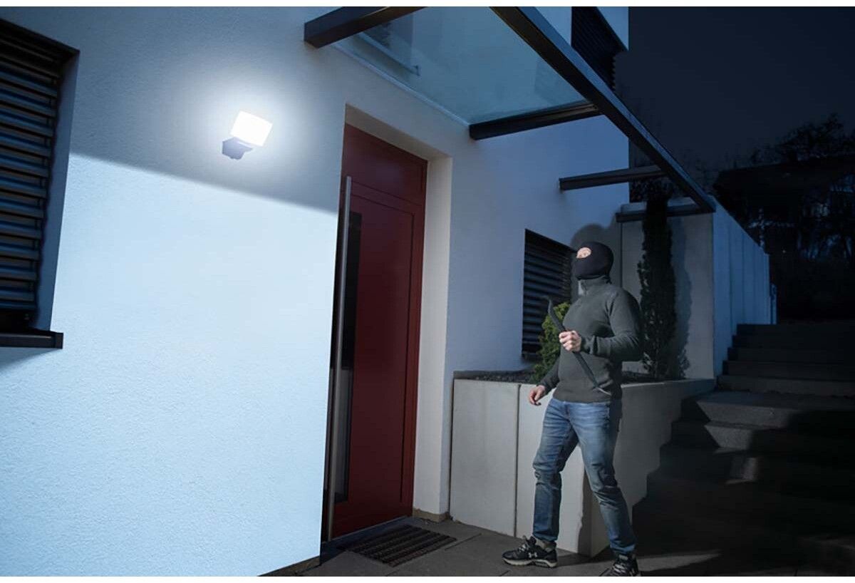Den smarte utendørsspotten for veggmontering fra Brennenstuhl Connect med en effekt på 20W er ideell for automatisk å lyse opp inngangspartier, innkjørsler eller carporter og for å forhindre innbrudd og tyveri.