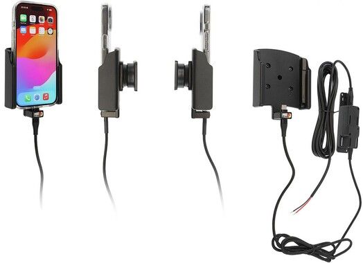 Pakke som inneholder en aktiv holder for fast installasjon og et mobilt skall fra Brodit. Holderen er spesiallaget i henhold til skallet for å gi en perfekt passform til din iPhone 15 Pro.