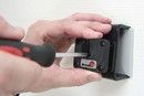 1. Løsne skruen i midten av holderen slik at du kan fjerne monteringsplaten på baksiden.