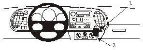 1. Trykk den vinklede øvre delen av holderen inn i gapet mellom sentralen og instrumentpanelet.