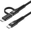 De to USB-C-kontaktene sikrer kompatibilitet med et bredt spekter av USB-C-enheter, og Lightning-adapteren lar deg også bruke den med Apple smarttelefoner, noe som gjør den til den perfekte løsningen for husholdninger eller kontorer med flere enheter.