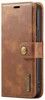 Lommebokkoffert i skinn med avtagbart, magnetisk indre skall. Dekselet passer til iPhone 15 Pro Max og har 3 kortspor.