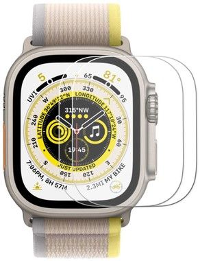 2-pakning med skjermbeskytter for Apple Watch Ultra. Skjermbeskytteren er laget av herdet glass med en hardhet på 9H.