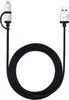 Multifunksjonell kabel for lading og synkronisering. USB-kabel med lightningkontakt og MicroUSB.