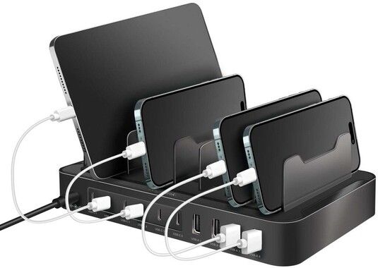 Ladestasjon med 10 porter. 6 USB-C (PD) og 4 USB-A (1 QC3.0).