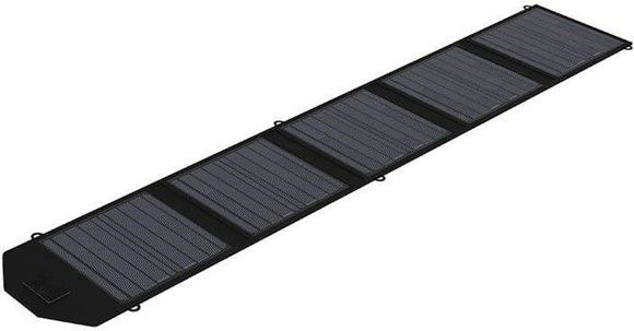 Stort, sammenleggbart solcellepanel med en maksimal effekt på 100W. Det sammenleggbare sign gjør det enkelt å ta med seg og montere.
