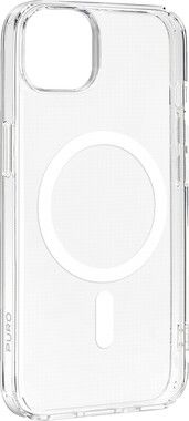 Gjennomsiktig skall med innebygde magneter for full kompatibilitet med MagSafe-tilbehør. Dekselet er laget av myk TPU og har forhøyede kanter rundt kameraet for å beskytte det.