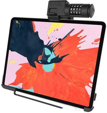 RAM EZ-Roll"r kombinasjonslåsholder for iPad Pro 12,9 " sikrer enheten din i en formtilpasset holder mens hele skjermen er synlig. Skyv ganske enkelt iPad -en inn i holderen og flytt den øvre klipsen over enheten for å feste den på plass .