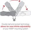 RAM-B-349-1U har en utvendig gjenge M10 x 1,5 stigning koblet til en 1" gummikule. Diameteren på den runde flensen er 14,3 mm og gjengelengden er 10,5 mm.