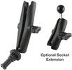 RAM Quick Release Socket Arm Extension består av en 6" lang B-socket arm, en 3,73" lang B-socket arm, en dobbel kuleadapter som forbinder de to armene, og en stangkuleadapter som kobles til RAM Universal Wheelchair Base Mottaker. Hurtigutløserfunksjonen på stolpen lar deg raskt sette inn og fjerne braketten fra basen etter behov. Disse sokkelarmene kan tilpasses enhver RAM-ballholder for å støtte telefonen, nettbrettet, koppholderen eller hvilken som helst annen enhet. For å oppnå den perfekte monteringsposisjonen for enheten din, kan du bruke bare én av de medfølgende utløpsarmene, eller koble sammen de to armene for ekstra forlengelse.