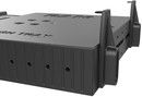 Disse armene kan flyttes både vertikalt og horisontalt, noe som gir en tilpasset passform for forskjellige bærbare tykkelser og friheten til å ikke blokkere porter eller enheter. Hullmønster på omkretsen av rommet letter montering av ekstra RAM-systemer for å støtte GPS, PDAer eller annen elektronikk.