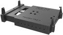 RAM-montert tøff skuff fjærbelastet bærbar PC-holder med flate holdearmer er et fjærbelastet utvidbart brett som rommer 10" til 16" brede bærbare datamaskiner. Rommet inneholder fire flate klemarmer på siden, slik at din bærbare datamaskin kan lukkes helt i rommet.