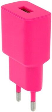 Synlig vegglader med et USB-A-uttak på 2,4A. Veggladeren lader enheten din raskt og er enkel å finne takket være sin rosa farge.