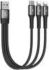 Slitesterk 20 W USB-A-kabel, dekket i flettet nylonstoff som muliggjør lading av flere forskjellige enheter samtidig.