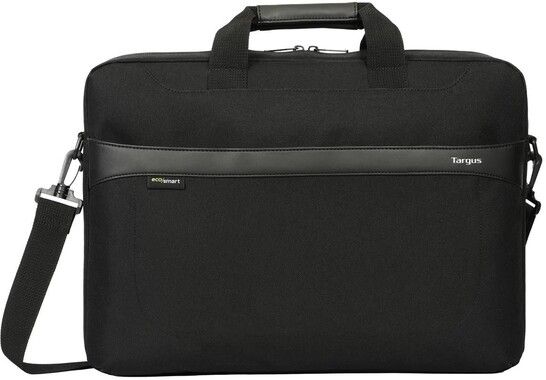 På fronten er det et rom med glidelås for oppbevaring av mindre tilbehør og innvendig er det et polstret laptoprom og plass til dokumenter.
