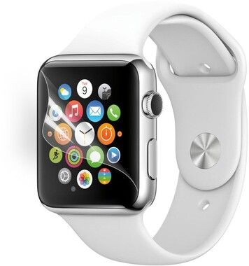 En skjermbeskytter av plast (såkalt displayfilm) til Apple Watch (44mm) . Det beskytter skjermen på smartklokken din mot støt, riper og smuss.
