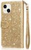 Glitrende lommebokveske med tre kortspor og seddellomme. Vesken har også en lomme med glidelås foran.