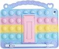 Justerbart silikondeksel til iPad 10.2 med bakside full av bobler. Skallet er perfekt for barn og har en fleksibel bærestropp. Skallet har også et fleksibelt håndtak.
