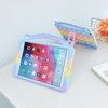 Justerbart silikondeksel til iPad mini med bakside full av bobler. Skallet er perfekt for barn og har en fleksibel bærestropp. Skallet har også et fleksibelt håndtak.